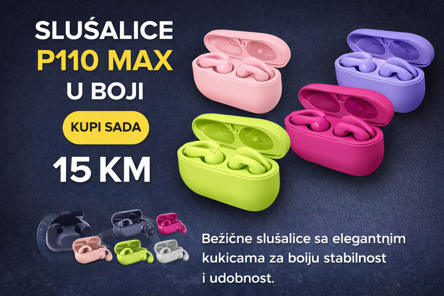 P110 Max bežične slušalice su savršen izbor za sve koji žele kvalitetan zvuk, moderan izgled i maksimalnu praktičnost. Dolaze u više atraktivnih boja, tako da možeš izabrati stil koji ti najviše odgovara.